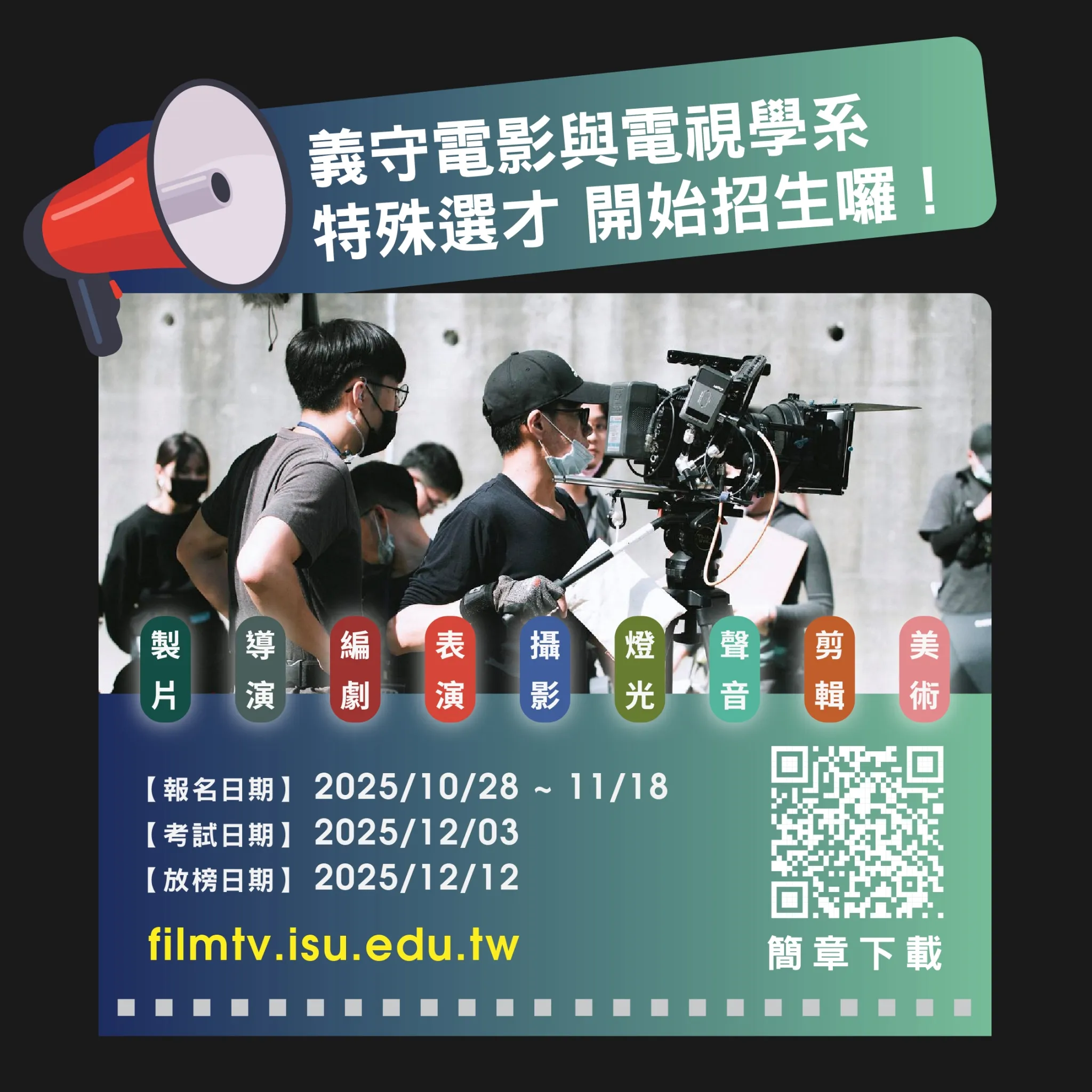 🌟義守大學電影與電視學系〖特殊選才〗招生中!✨